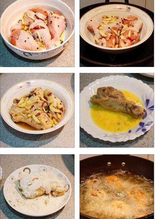 7.如果傢裡沒有面包糠,那麼在第六步時將雞腿炸至定型就行,撈出控油後再裹一層面粉,然後再炸至定型,反復兩次左右,最後炸至金黃色就可以瞭!
