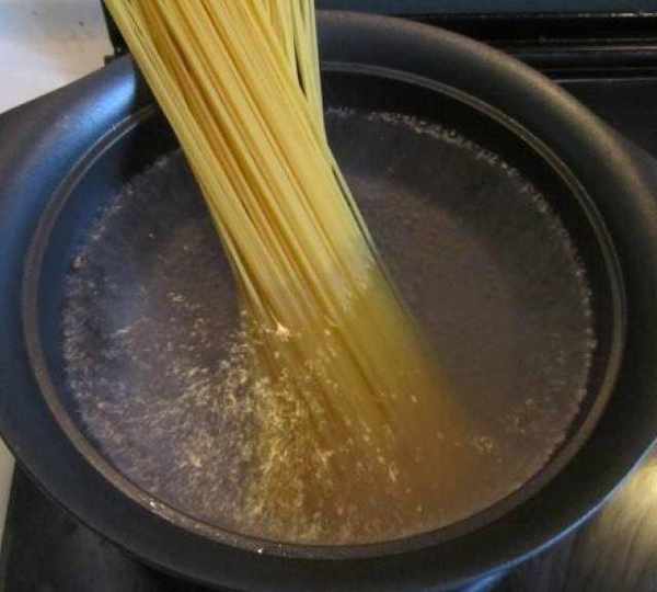 第3步、燒鍋開水,放入適量鹽,將面條下入,大火煮上8-10分鐘;