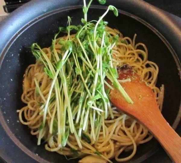 第10步、再下入清洗好的豆苗;