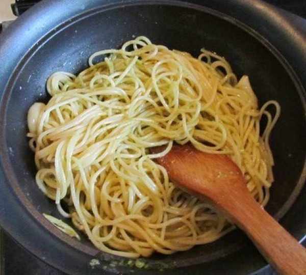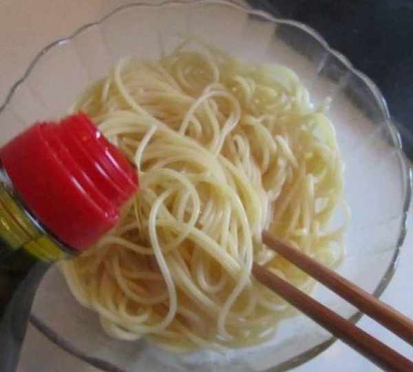 第4步、將煮好的面條撈出,放入適量的橄欖油攪拌均勻備用;