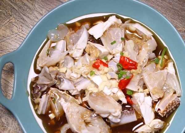江蟹生是溫州的傳統冷菜,由生江蟹凉拌而成。江蟹也就是梭子蟹,經過精劈分解,用生薑、胡椒粉、糖、醋、醬油、黃酒浸制或輔以其它密法原料,制浸時間約半小時至一小時,囙此江蟹生的表面味道就是酸、甜、醬、鮮,蘸了芥末吃,就變成了鮮猛辛辣。吃起來不粘殼不帶腥,撅嘴輕輕一吸,蟹肉便脫離蟹殼滑入口中。