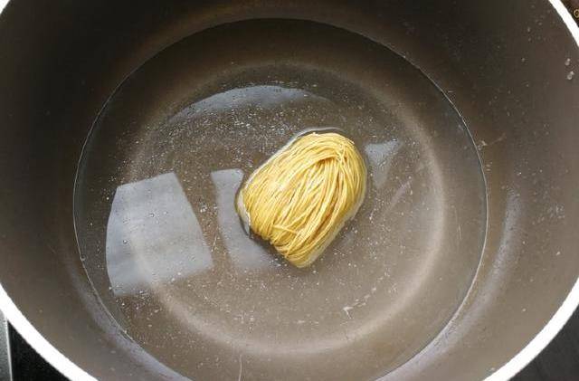 蝦子面與清水一起放鍋內,下點鹽,煮開
