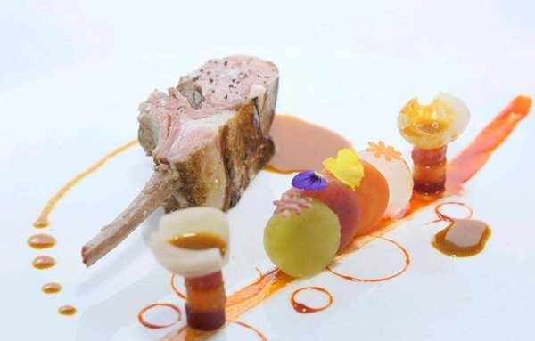 羊肉去皮去筋去掉邊角料,剔幹凈骨頭加入黃油、鹽、胡椒粉、百裡香低溫62度慢煮後取出擺入盤中,胡蘿卜汁濃縮劃盤