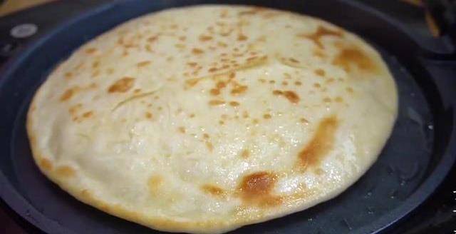 放進去的好的電餅倉裡開大火,撈上一分半鐘,時間到以後在表面刷一層薄油,給生胚翻個面,在接著撈上一分半鐘,看一下餅子,慢慢地鼓起大泡就熟。烙餅時開大火能鎖住水分,不易流失,使烙出的餅外酥裡軟,這樣做的燙面油餅吃著柔軟筋道,看一下這層次多好,涼瞭也不容易硬,比店裡賣的還好吃。