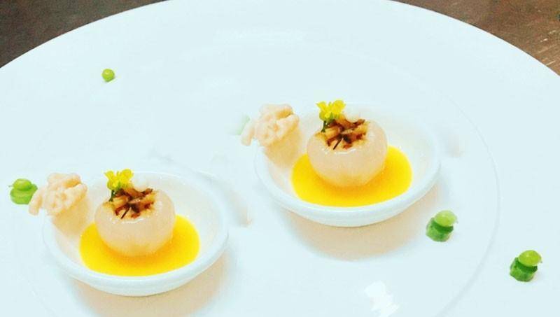 荔枝1顆、黑松露、菌菇、鮮核桃、橄欖油、鮮橙汁、蜜豆、鹽、糖