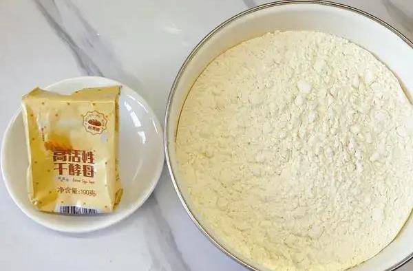 1.首先我們需要準備好蒸饅頭要用到的食材:面粉和酵母粉。蒸饅頭不像做西點面包之類的要求嚴苛,普通的傢用面粉都可以蒸出暄軟的饅頭。酵母粉的用量拿不準的話可以看後面包裝袋上面的說明書,基本上我每次都是每500g面粉用5克酵母粉蒸出來的饅頭就又香又軟特別好。