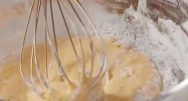 3、另取一容器,加入一個全蛋、適量的面粉、淀粉,制成蛋黃糊待用;