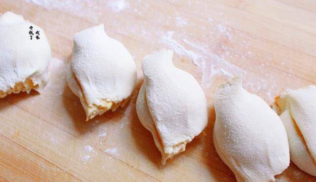 7.把面劑子的兩頭捏緊收口,並立起來。