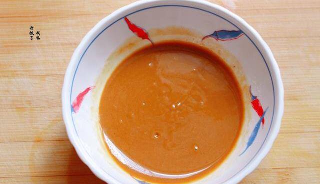 3.松弛面團的時候可以調芝麻醬,芝麻醬裡放少許香油懈開,同時撒少許鹽或椒鹽調味即可。