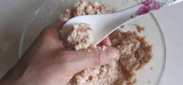第二步:處理食材,首先我我們要準備一個幹凈的盆子,在盆子裡面放入適量的清水,再把前面買來的豆腐放到水裡面浸泡,放在外面的話豆腐容易變味,這樣就不好吃瞭。洗幹凈以後放到盆子裡面碾碎。再把剛剛買回來的新鮮豬肉放到清水裡面洗兩到三遍,洗幹凈以後就可以放到菜板上面進行切末,如果自己嫌很麻煩的話,可以在買的時候叫老板用機子壓成末也是可以的。再把前面買來的食材全都切好放到碗裡面留置備用瞭可以瞭。