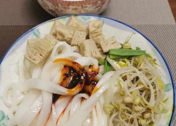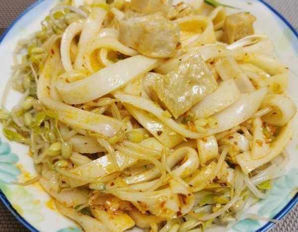 拌上汁子,放些豆芽、黃瓜、面筋等即可。