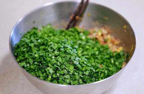 最後放入韭菜碎