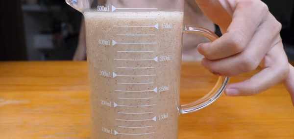 5:把果汁分成兩份,每份大概500毫升,像這樣子,放在旁邊備用。
