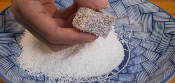 12:往盤中倒入椰蓉,把雪梨糕蘸上椰蓉,擺放到盤中,這道點心就做好瞭。