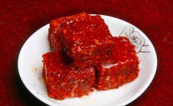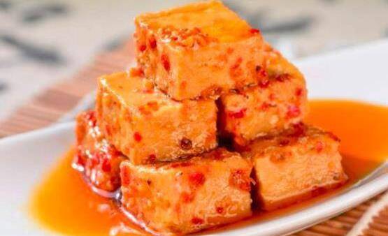 2、首先我們要將老豆腐切成小塊,然後要將豆腐當中的水分瀝幹凈,至少要一天一夜,然後取一個能夠密封好的容器在容器中墊上稻草,當然也可以選用粽葉等這類食物,然後將裡幹凈的豆腐,放到上面。這時候我們就要將保鮮膜蓋蓋密封,然後讓豆腐好好的發酵,豆腐發酵好瞭之後,我們就能夠用筷子輕易的插到豆腐裡面,豆腐乳好不好吃?就看這一部瞭,等到發酵好的豆腐在白酒裡過一下,然後再拌入鹽,白糖,雞精等等就可以瞭。再裹上一層辣椒油,然後將這個豆腐放到罐子裡密封一周就可以吃瞭。