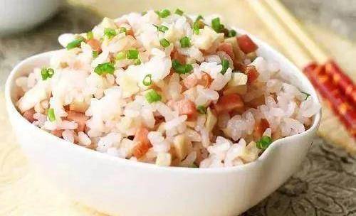 準備材料,火腿和杏鮑菇切丁鍋中放少許油,倒入火腿翻炒繼續放入杏鮑菇翻炒後,放適量的鹽將米飯,火腿杏鮑菇,一起放入電飯鍋中,加入適量的水煮好即可