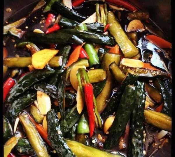 把黃瓜切段,胡蘿卜切片,根據個人口味放適量鹽,醃制12個小時,然後擠幹水份,放通風處晾幹表面水份。每年9月份開始秋風直吹的窗口平鋪晾一晚上,第二早絕對是晾的幹幹的,醃出來的超級脆,之前從沒晾的這麼幹過,意外的驚喜。醬油跟冰糖少量醋一起放進鍋裡煮開,放涼把蒜,薑切片,辣椒中間切一刀,不要切開,,備用鍋裡放玉米油燒熱,倒入放有花椒的碗裡。放涼備用!把黃瓜,胡蘿卜,蒜片,薑片,辣椒放入醬油汁中拌勻,然後放入兩勺白酒,最後放入炸好的花椒油。放入密封的罐子裡,兩三天就可以吃瞭,最好放冷藏裡,涼涼脆脆才是那酸爽~簡單好吃醃黃瓜