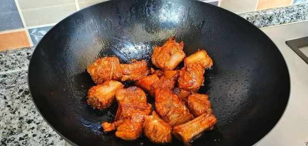 6,下排骨,翻炒上色。