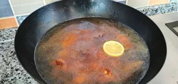 8,加適量清水、放入檸檬或者料酒,大火煮開再調小火燉1個小時。