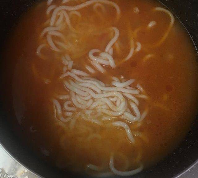 第8步、放入烏冬面,大火煮開三五分鐘左右。