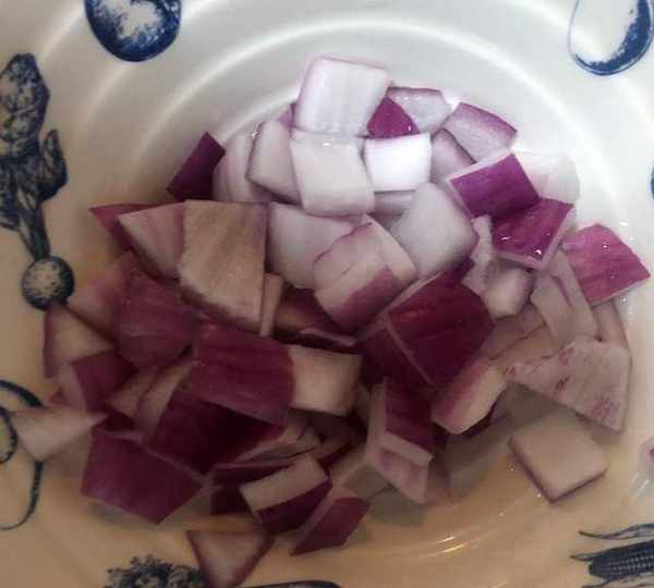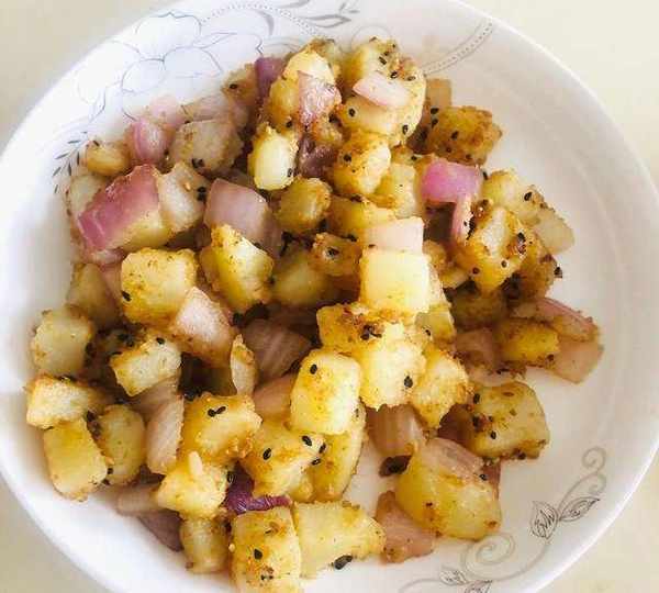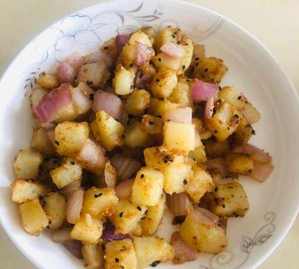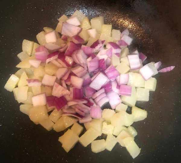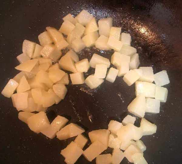 第1步、土豆洗幹凈瞭切小塊,下鍋焯水。