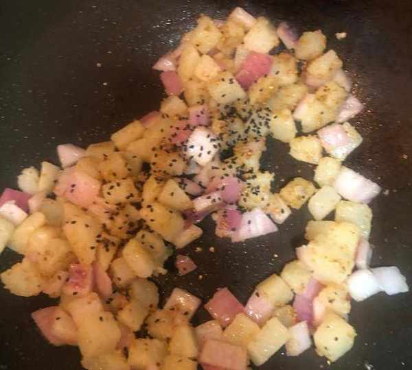 第8步、加入點黑芝麻,鹽,醬油。翻炒均勻出鍋。