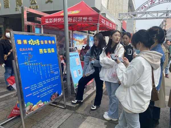 “你給我冬天裡的溫暖,我許你4月的春風”,淄博人的熱情好客和大學生們感恩之心的互動,從此成為一段佳話,在大學生中傳播開來,以致濟南大學生紛紛前往淄博吃燒烤,火車票一票難求。淄博於是在濟南和淄博之間開出專列,文旅局長登上專列介紹淄博的美食和文化,又在全市開出21條燒烤公交專線,服務遊客。