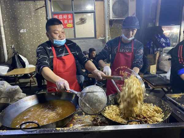 八大局位於淄博漸趨沒落的東城,原本是一處銷售生鮮為主的便民市場,以價格便宜著稱,據稱西城的人常常會來八大局采購。變成網紅打卡地後,不少賣肉的攤主都及時轉向,改賣炒鍋餅、紫米餅和牛奶棒等網紅小吃,有些外來賣貨的沒攤位,就和賣菜的攤主商量,拼一個攤位。