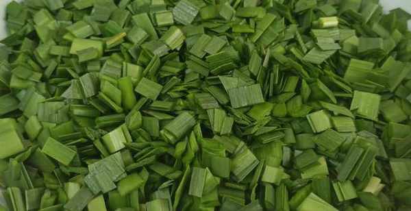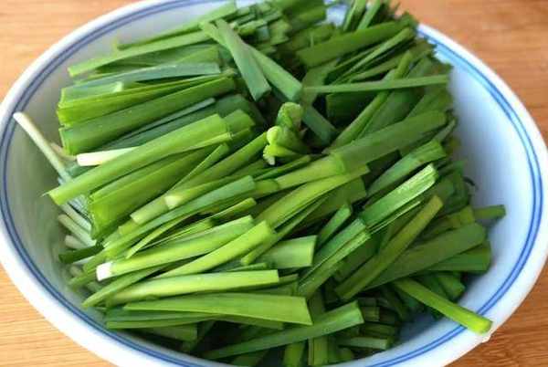 首先把韭菜清洗幹凈,控幹水分後放在案板上切成韭菜碎,切好之後裝在大碗裡面。