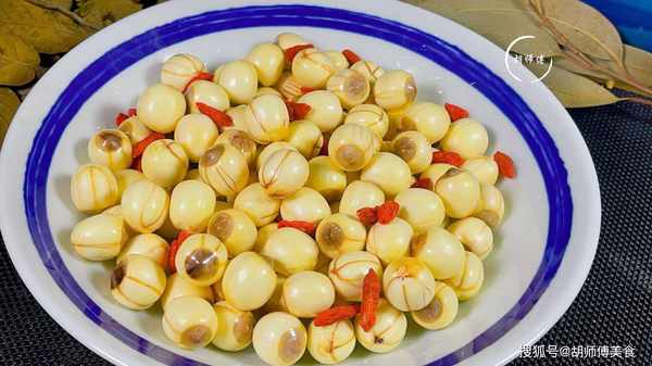【原材料準備】:新鮮蓮子300克(或幹蓮子200克)、枸杞、冰糖適量。
