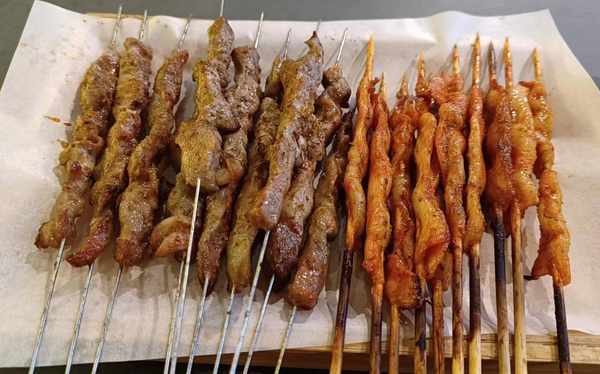 特點:小串為主,醃制入味,以重料出名,講究“蘸、刷、撒、烤、翻、壓”。