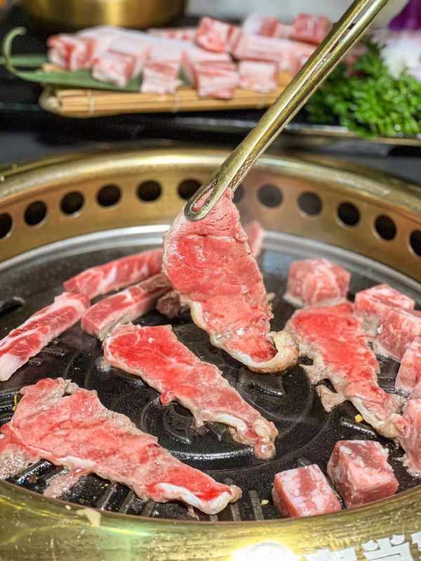 特點:使用鐵板烤盤,與炭火隔開煎烤,烤前洋蔥片、鹽、豆油、啤酒拌肉,肥肉蹭鍋。