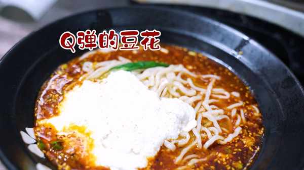 熱氣騰騰的骨湯沖入碗中,勁道的面條再加上一層Q彈的豆花,讓人垂涎欲滴。