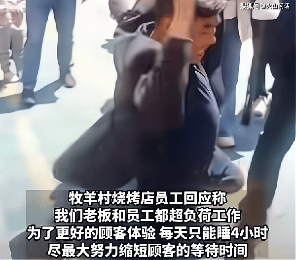 燒烤店工作人員表示,這場突如其來的爭執,源於店傢超負荷工作,每天隻能睡4小時,為瞭增加員工的休息時間而作出排隊限號導致的。