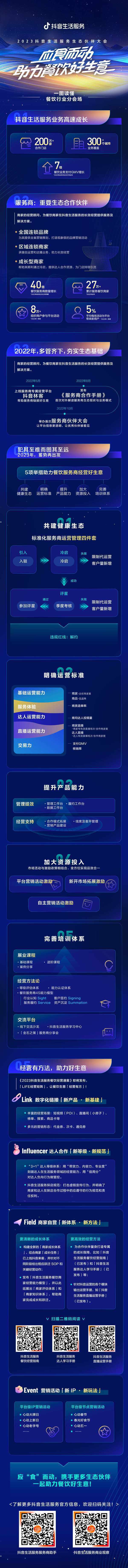 隨著抖音生活服務餐飲業務的日益完善,一個平臺、商傢、服務商和達人、MCN等多方共營的生態模式已經建立,作為不可或缺的共營者,服務商以其專業、優質的服務能力,在商傢實現長效經營的過程中發揮著巨大的價值。抖音生活服務也將繼續著力營造一個健康、良性的生態環境,與各位生態夥伴一起“做餐飲長效好生意”。