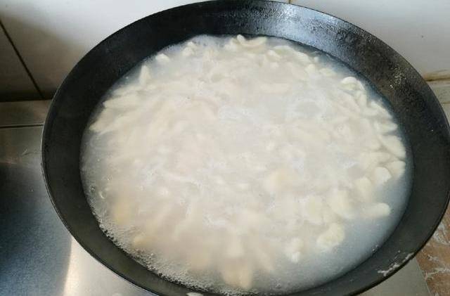 10、另外準備一個鍋,燒開水後,將麻食放入鍋中煮開煮4分鐘左右。