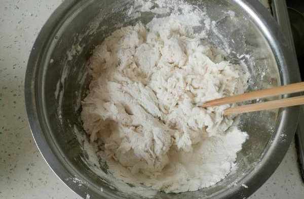 1、面粉裡面加入適量的清水,攪拌成絮狀。