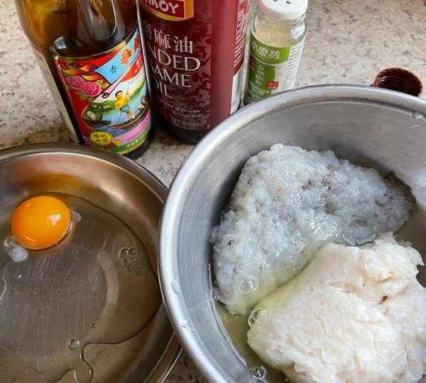 原料:蝦肉、魚滑、面包糠、雞蛋、蠔油、麻油、胡椒粉。
