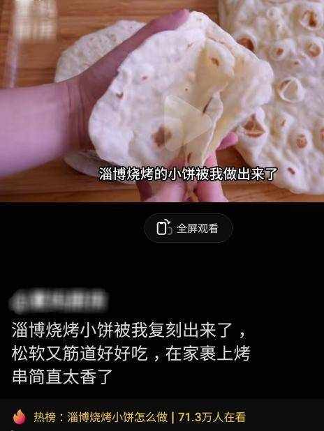 去不瞭“烤場”的吃貨急瞭,在傢DIY淄博燒烤,還有人默默研究起瞭淄博小餅。4月27日,奔流新聞記者註意到,在短視頻社交平臺關於“淄博燒烤小餅怎麼做”的話題登上熱榜……