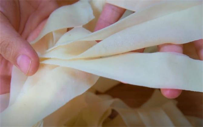6.我們撕開看一下效果,看一下這個面皮,非常的柔軟,而且很筋道。