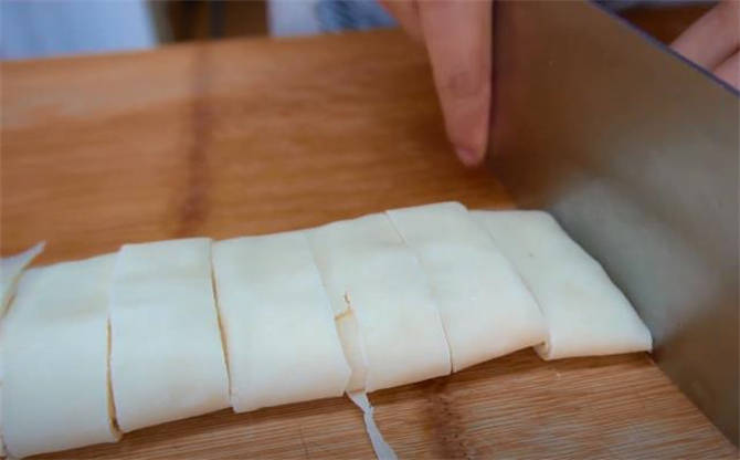 7.摞在一塊,然後卷起來,切成條。