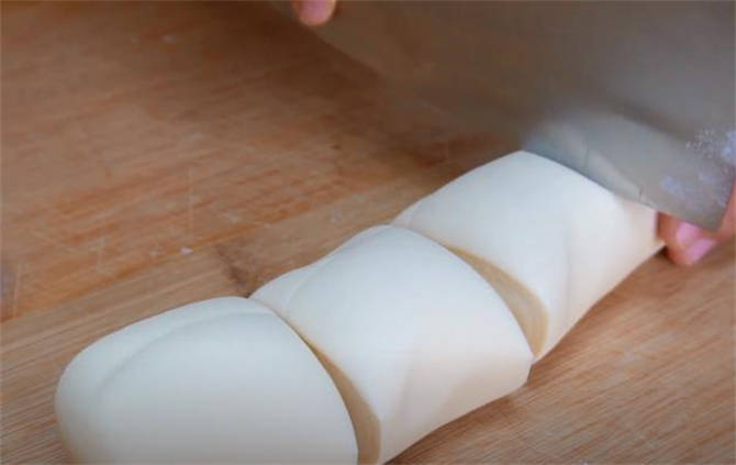 2.現在面團已經餳好瞭,不用揉直接滾成長條,再切成小面劑。