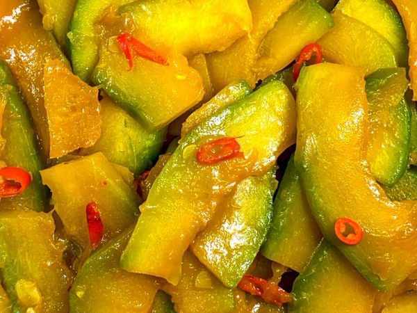 1、南瓜削掉外皮,清洗幹凈後切成片。小米辣洗凈後切成圈,蒜切成蒜末。