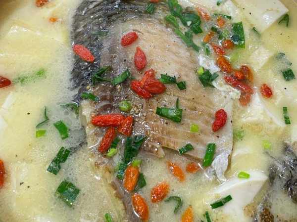 準備食材:鯽魚,嫩豆腐,枸杞子,蔥花,薑片。