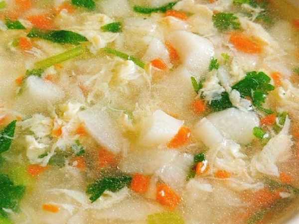 2、起鍋燒水,水燒開後放入山藥碎煮一會兒,煮5分鐘後,放入胡蘿卜丁和雞蛋液煮1分鐘。