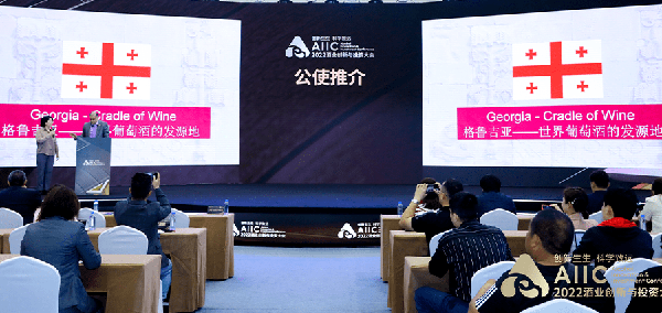 ▲今年2月,格魯吉亞駐華大使館公使大衛·皮皮那什維利在2022酒業創新與投資大會第二階段會議期間進行推介