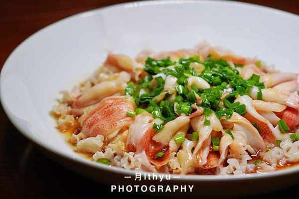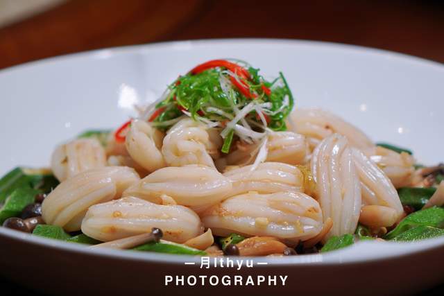 不得不說花枝的刀工有夠驚艷,一粒粒花枝像花一樣的擺放著。花枝鮮脆、秋葵的清爽,兩者相得益彰。