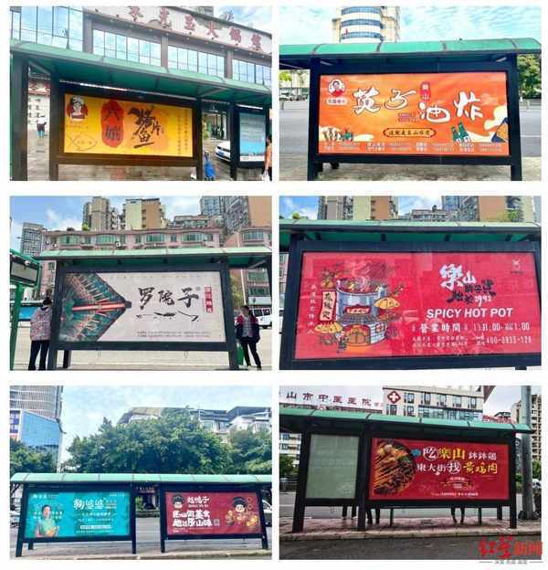 4月27日,紅星新聞記者在樂山街頭看到,城區的近400個公交站也紛紛換上“新裝”,各式各樣的樂山美食已經“霸屏”公交站臺,成為街頭巷尾一道靚麗的風景線,吸引瞭不少遊客的眼球。