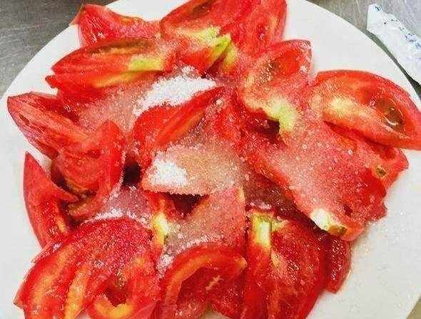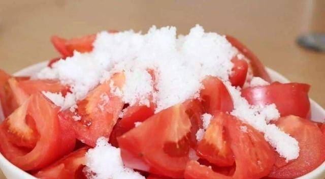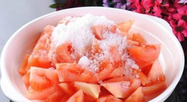 很多朋友可能不知道為什麼廚師會在這個番茄和糖中加入鹽。其實這個技巧主要是一句廚房諺語叫“要甜就放少許鹽”。主要原因是鹽分破壞瞭食材中的一些物質,使一些酸味變少瞭酸味,吃起來味道變甜,甜度增加。就像我們吃菠蘿一樣,鹵水菠蘿可以增加甜味和風味。