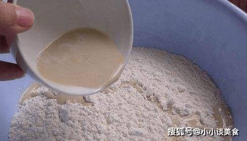 1、先在鍋中放入適量的面粉,加入適量的酵母,用溫水將酵母溶解,再加入適量的糖,攪拌至溶解,然後倒入面粉中。倒的時候分開倒,混合成粉撲。